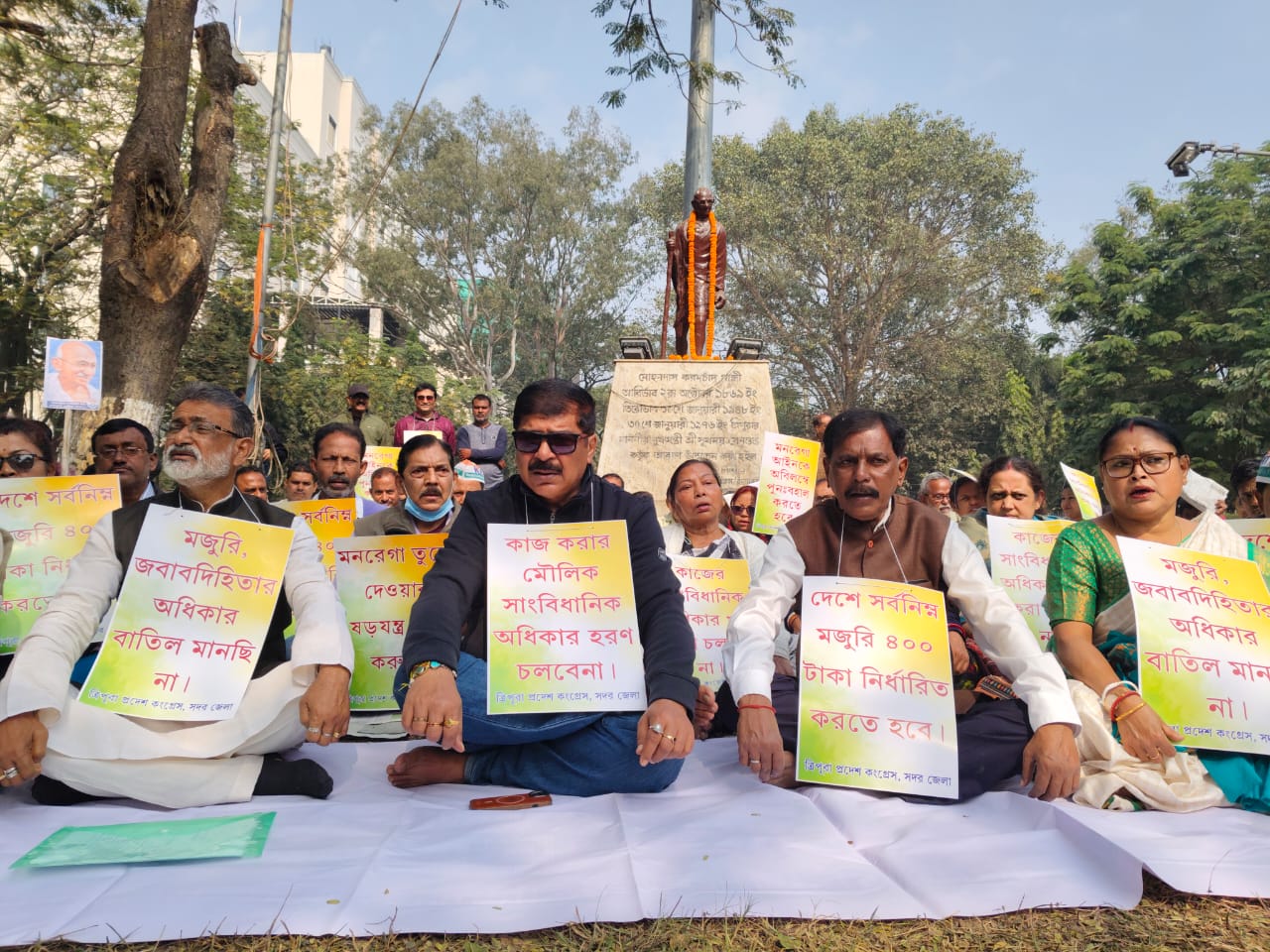 The Tripura Congress demanded immediate repeal of the VB-G RAM G Act, restoration of MGNREGA in its original form, and an increase in minimum wages to ₹400 per day, asserting that the agitation would continue until “the right to work and Gandhian values are restored.”