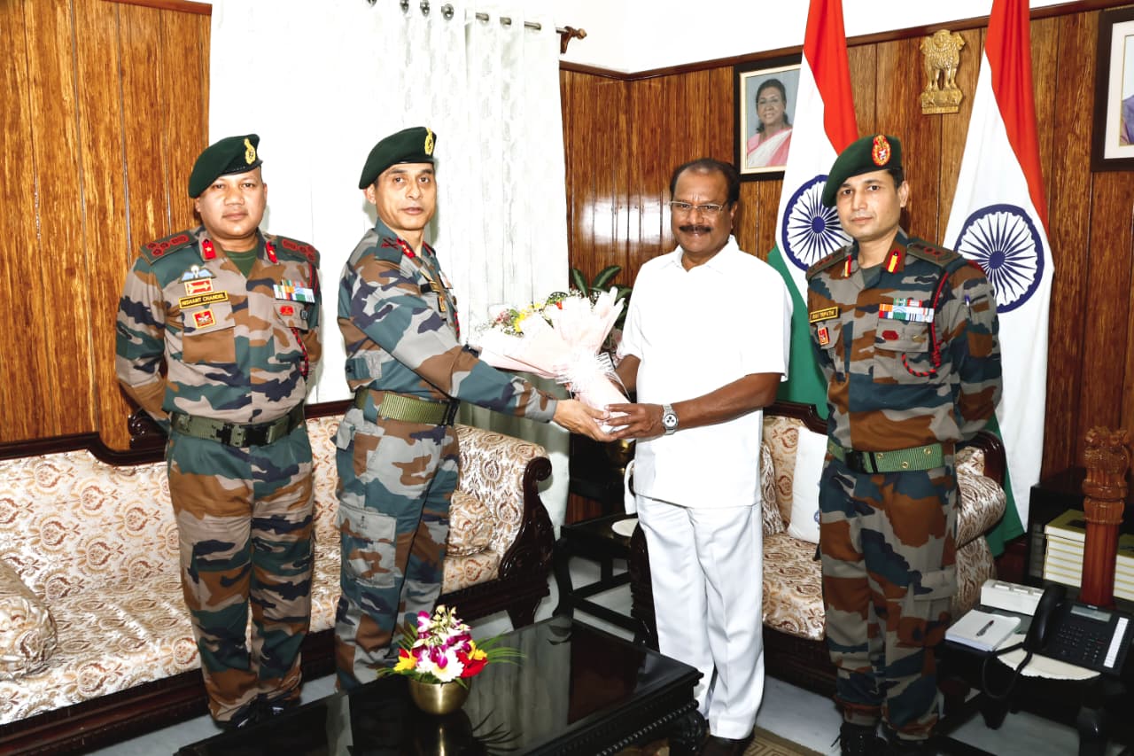 Major General Inderjit Singh Bhinder, Inspector General of Assam Rifles (East), paid a courtesy call on the Governor of Tripura, Shri Indra Sena Reddy Nallu, at Raj Bhavan (Lok Bhavan) in Agartala this evening. The meeting was marked by warm exchanges and constructive discussions on matters concerning security, development, and continued cooperation between the civil administration and the Assam Rifles in the region.