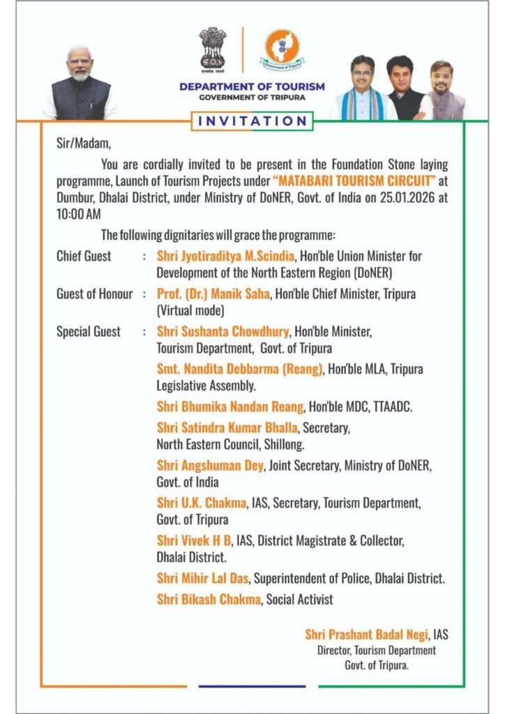 Agartala, Jan 25: Union Minister for Development of North Eastern Region (DoNER) Jyotiraditya Scindia on Saturday laid the foundation...