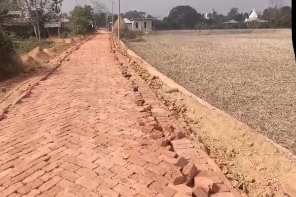 According to villagers, the construction work has been executed using poor-quality bricks, raising questions about both workmanship and supervision. Residents claim that sections of the road have started collapsing even under the weight of a single vehicle, making it unsafe for daily use. Locals allege that the road was awarded to contractor Ajay Ghosh of Amarpur, but that quality norms have been blatantly ignored during construction.