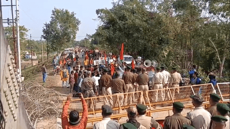VHP activists organised the demonstration at the Raghna check post and border trade point along the India–Bangladesh border in northern Tripura. The protesters called for an immediate halt to all border trade and export-related activities with Bangladesh as a mark of protest against the violence. A large contingent of security personnel was deployed at the site to maintain law and order during the several-hour-long agitation.